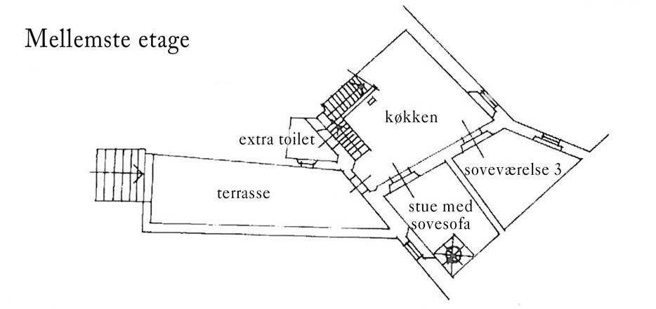 Fra TV stuen er der adgang til de to soveværelser ovenpå