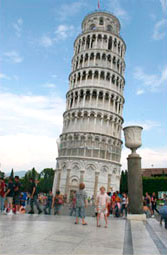 Pisa er verdensberømt for sit skæve tårn, som hælder omkring fire meter til den ene side. Det skæve tårn i Pisa står op Miraklernes Plads, hvor du også finder dåbskapelltet, domkirken og kirkegården. Man kan stadig tage trappen op til toppen, hvorfra der er en fantastisk udsigt over pladsens hvide marmorbygninger og hyen som helhed.